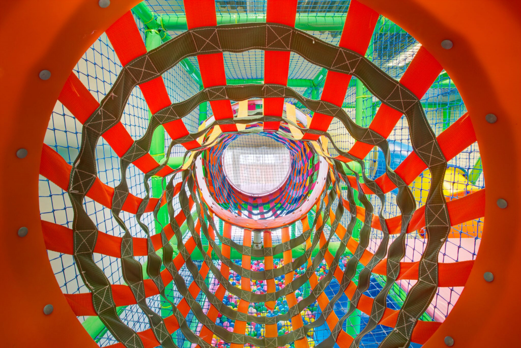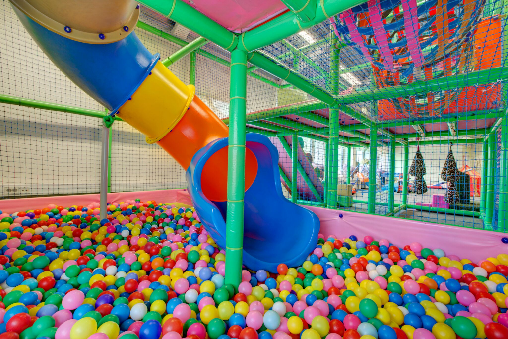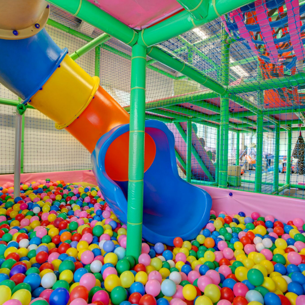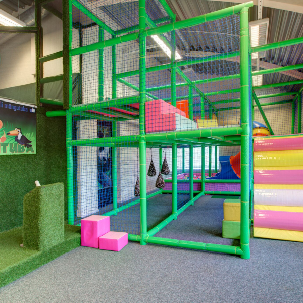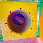Themed play structures Play structures connected with foam area Design and installation 6 x 3.6 m and specially designed 3 floor indoor play structure, connected with foam area. Spiral slide Themed bombs Tunnel Floor blocks