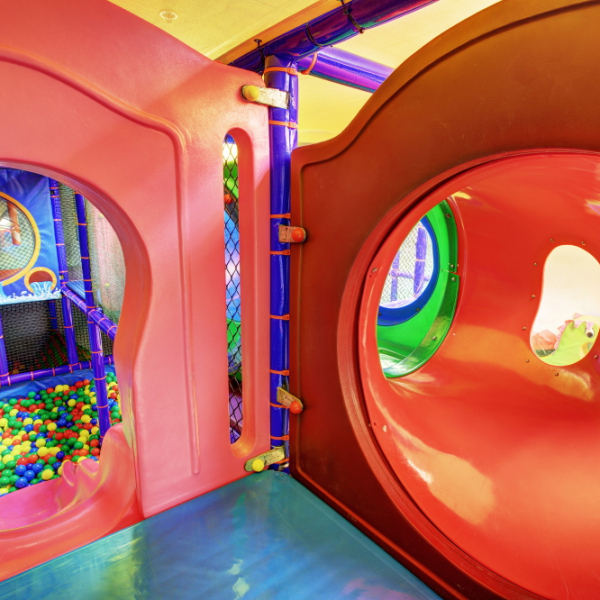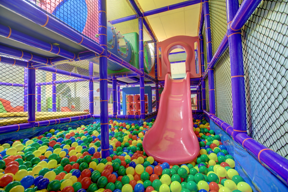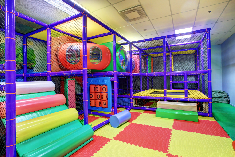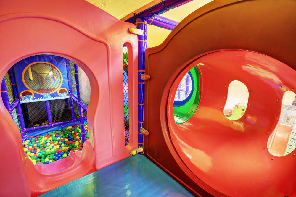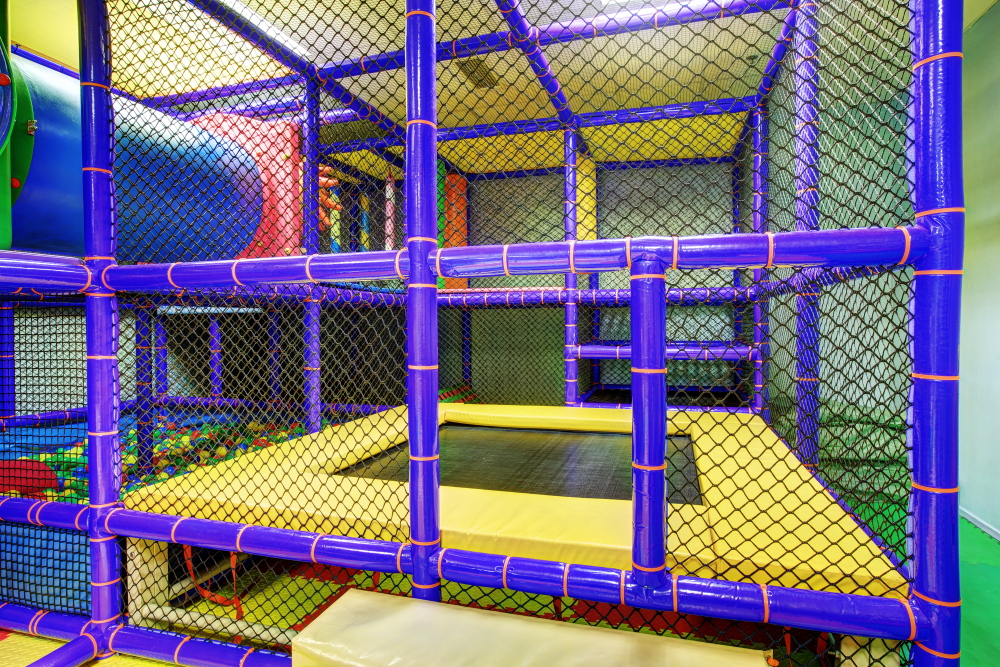 Redisgned indoor play structure with the size of 5 x 7.5 m. We added trampoline and elements, changed design and added new tuff-pads, netting and puzzle mats. Please also see video how it was done: